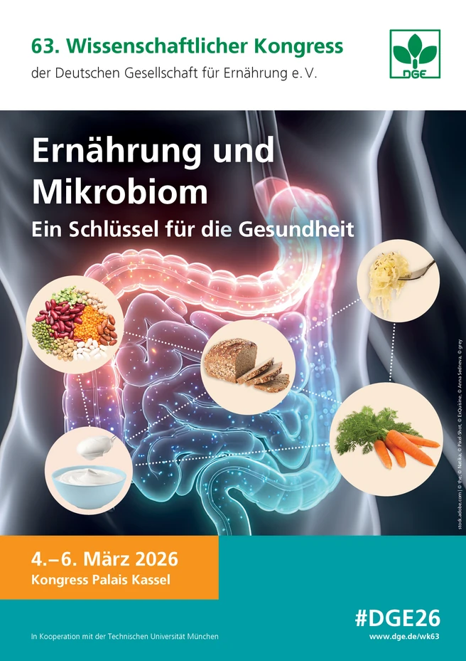 Vom 04. bis 06. März 2026 findet der 63. DGE Kongress "Ernährung und Mikrobiom: Ein Schlüssel für die Gesundheit", organisiert vom ZIEL - Institute for Food & Health, in Kassel statt.